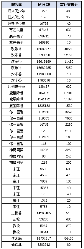人间一两风碎片回收活动现已结束,即日起,未达成个人所需回收总积分的角色及相关账号进行封停,若准备好足够的物品回收请联系官方QQ1131866777处理,以下为未达成所需回收总积分的角色名单,现予以公示: