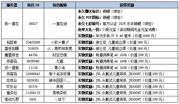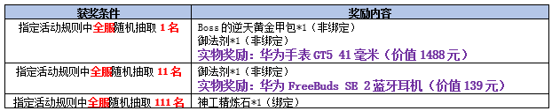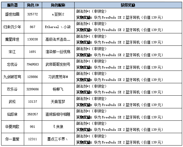 恭喜以下角色获得:御法剂*1(非绑定)、华为FreeBuds SE 2蓝牙耳机(价值139元)