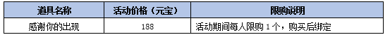 感谢你的出现:感谢你的出现,让我期待永远。右键使用后获得绑定的金盏花束或水仙花束*1、刻刀*1,并有几率额外获得非绑定的装饰家具:甜品烘焙机或烤箱*1。