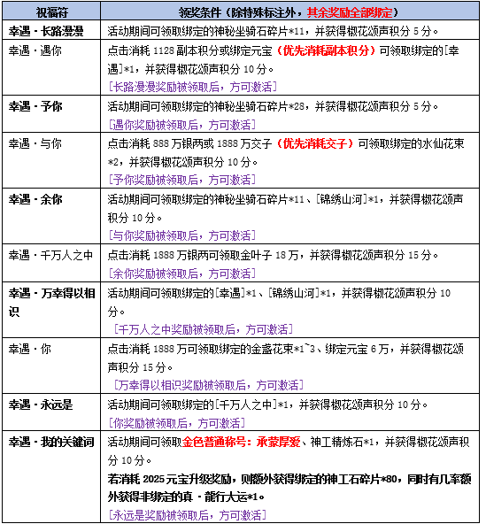 本期[幸遇]活动列表:每个祝福符仅可领奖1次,且需从右至左按顺序依次领取。