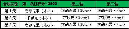 C)三日累积赠送情书、接受情书第一名且符合情书数量的奖励:【绑定】