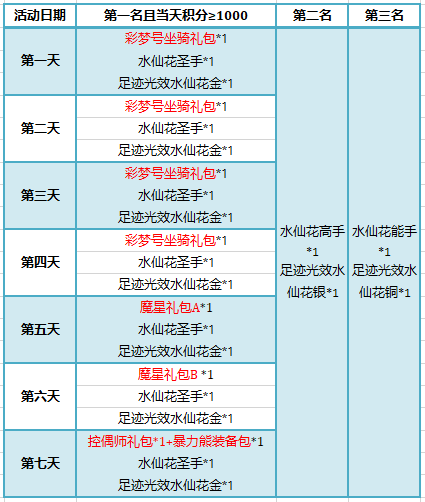 ① 真•永恒星灵蛋:七日累积积分排名前8名且积分达到指定条件方可领取。