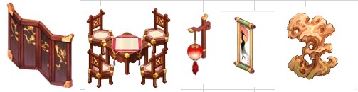 锦绣家具包A:随机获得云母屏风烛影深、雾里看花、花灯锦绣、闲云野鹤、云卷云舒之一