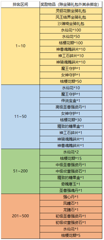 【活动三】:活动期间每个服务器参与水仙花排行榜活动七日累计积分排名第三且积分≥5000的角色,赠送首次使用后绑定的永久七彩称号:你转身微微一笑 夏日宣告*1、世界Boss面具:迷惑之泪*1。