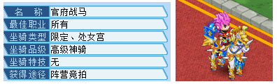 限定坐骑包II:随机获得旋转木马、沙滩椅、露娜、骷髅号、垂耳兔、神行灵鼠、灵貂花鼓、高级推进器等其中一个坐骑礼包。