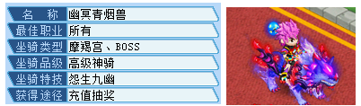 限定款Boss坐骑:闪电蛟,包括坐骑召唤石及骑术。