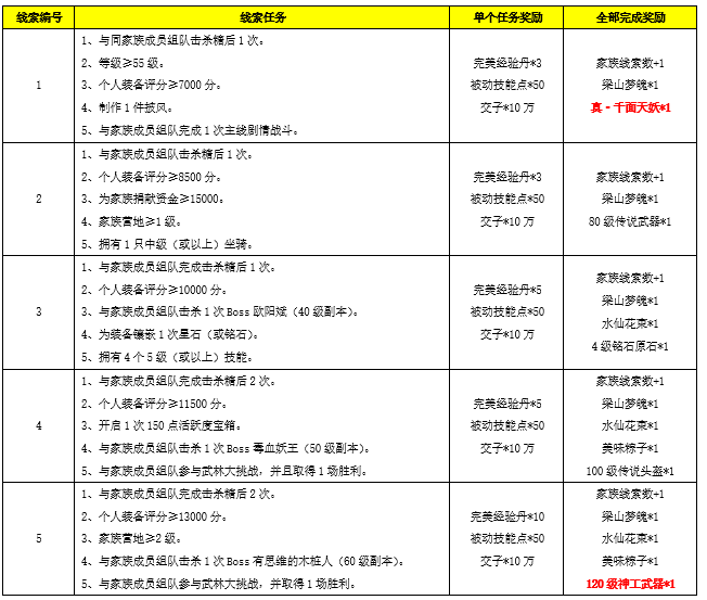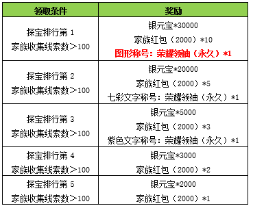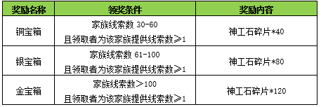 活动结束后,将根据家族线索数量、个人为家族提供线索数量给予如下奖励:
