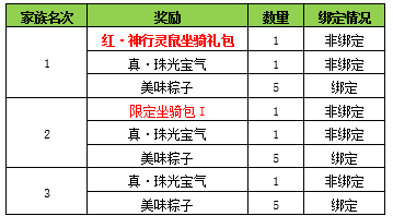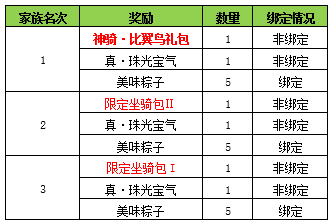 以上奖励均绑定,仅符合条件的家族族长可领取,且至多领取1次。