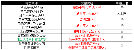 达到活动条件即可领取对应奖励,限量奖励为本服共享数量,领完即止。