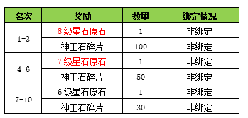 概率奖励:3-5级星石。奖励有几率为非绑定。
