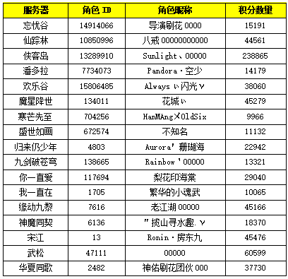 ②每个服务器参与水仙花排行榜活动七日累计积分排名第二名且积分≥8000的玩家,赠送非绑定Boss的逆天黄金甲包*2、蜜蜡*1。