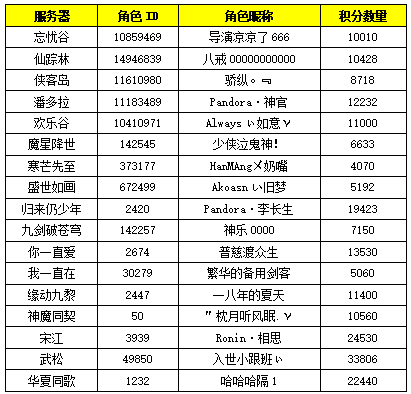 ①每个服务器参与水仙花排行榜活动七日累计积分排名第一名且积分≥10000的玩家,赠送非绑定凤凰·麒麟黄金甲包*1、世界Boss面具:凤凰之乐礼包*1、蜜蜡*1。