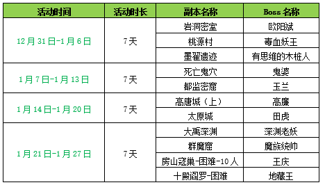 活动期间内,击杀以上副本Boss即视为参与该活动。