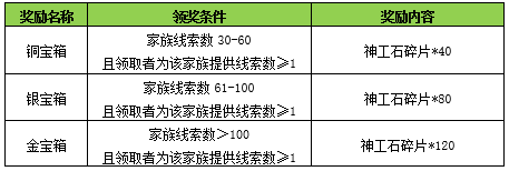 活动结束后,将根据家族线索数量、个人为家族提供线索数量给予如下奖励: