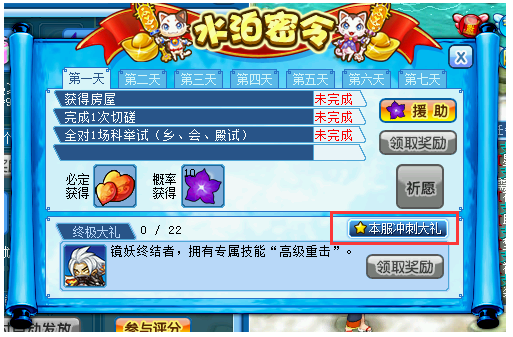冲刺大礼(点击水泊密令中红色框体位置进入):