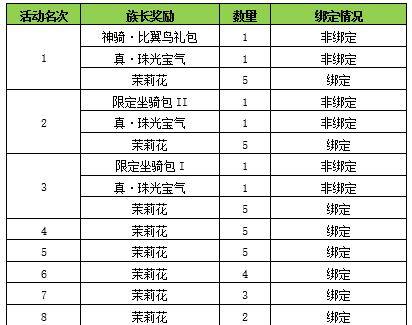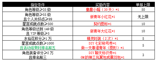 | 活动名称 | 活动条件 | 限定数量 | 奖励 |