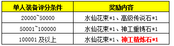 | 装备评分≥25000 | 不限量 | 神工石碎片*15 | |