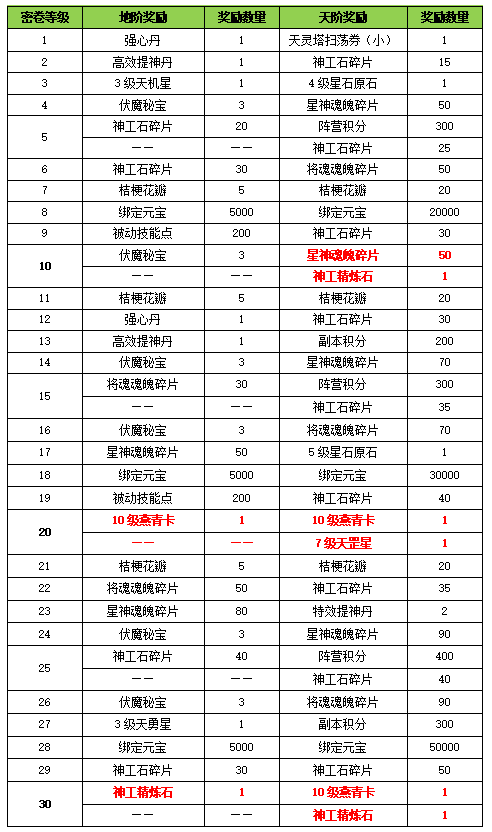 | 装备评分≥30000 | 不限量 | 神工石碎片*20 | |