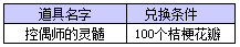 4. 唐小妖处永久上架道具:控偶师的灵髓,用于解除控偶师装备的绑定情况。