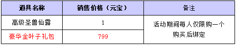 1. 限时上架特卖道具“高级圣兽仙露” “豪华金叶子礼包”,上架时间:2022年3月30日更新后至2022年4月6日版本更新前。