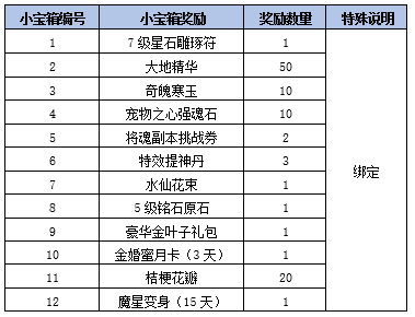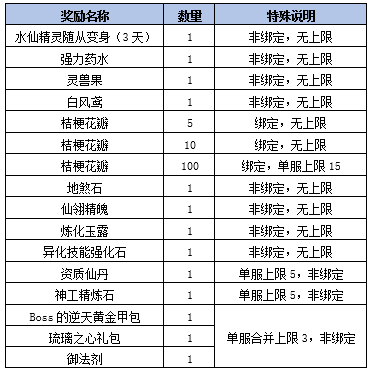活动规则:活动期间参与水仙精灵的秘宝并开启大宝箱的角色,有机会获得馈赠奖励。