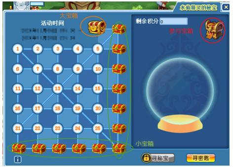 6)当大宝箱被开启后,可解锁寻秘宝按钮,消耗本期活动积分可探寻水仙精灵秘宝。
