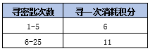 寻密匙:积分消耗如下表:(延续2024年的半价消耗)