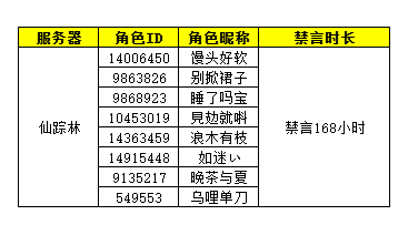 自2025年8月1日至10月24日期间不定期(合计15天)在20:12至20:42之间,于比武场中当前频道发布嘲讽性等不当言论(不当言论IP地址:广东省广州市),以上涉及发布不当言论的角色禁言168小时。