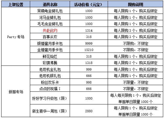 1、限时上架每周特惠道具,活动时间:2026年3月18日9:00—2026年3月25日7:00。