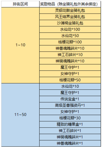 1)全部服务器水仙花副本排名及抽奖活动七日累计积分排名前10且积分≥10000的角色,赠送非绑定盛世白泽坐骑礼包、永久属性图形称号:真·你一直爱、世界Boss面具:凤凰之乐礼包。若出现积分并列情况,则从并列玩家中随机抽取获奖者。