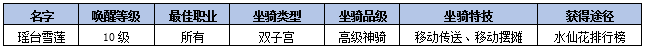 瑶台雪莲坐骑包:2026年限定版功能坐骑:瑶台雪莲,包括坐骑召唤石及骑术。