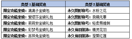 周年幸运蛋:以爱之名,共赴此约。开启周年幸运蛋时可自选奖池类型(坐骑或者星灵),星灵奖池包括传说~逆天资质或者成长的星灵,性别、性格随机;坐骑奖池包括五彩凤凰、骷髅号、夏梦等之一,获得的星灵或者坐骑绑定情况随机。(未开放星灵功能的怀旧服,无法选择星灵奖池。)