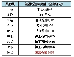②初遇线达标奖励:(未加入阵营则不可获得阵营贡献)