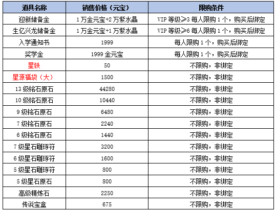 星源福袋(大):开启后必定获得1个星源(品质随机范围:优良—逆天)。