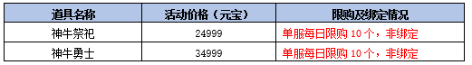 朝夕与共(3180金元宝,每个角色限购1个):内含神工石碎片*36、金叶子6万、绑定元宝1万,全部绑定。道具有效期截至2026年4月30日23:59。