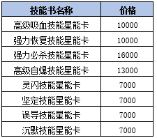 上架书内容以及价格:(技能等级均为1级)