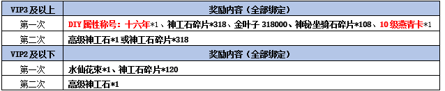 活动奖励:(每个符合领奖条件的角色每档奖励可领取一次)