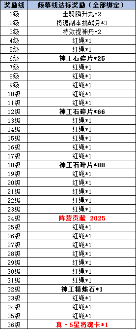 红绳:可用于兑换指定物品,全部绑定。